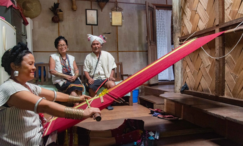 Each clan has its signature weaving style. The Thangnang and Saipikhup shawls are especially popular and are woven by hand with great care. For men, the Ponve shawl is an important garment, often draped over the shoulders during special occasions. Its geometric patterns symbolize nature, animals or tribal legends and certain designs are worn only by respected leaders in the community.